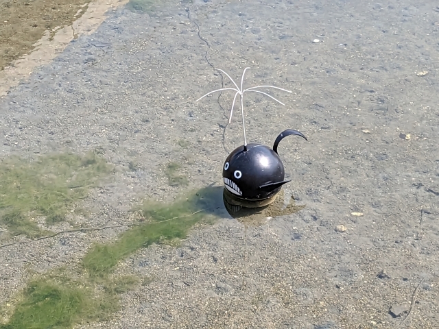 こちらはブイでできた「クジラ」。背中から潮を吹いているという手の込んだ作品です。