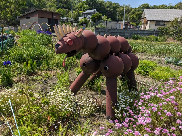 今回は時間の都合で行けなかったのですが、上新田港周辺にある「ぶいぶいガーデン」にも多数の作品がそろっているようです。