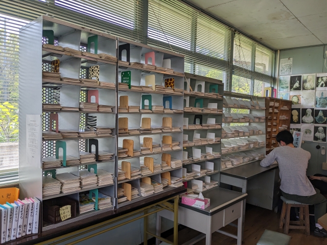 総数は54,000通を超えるというこれらの郵便物は閲覧自由。机やイスも置かれているので、じっくりと楽しみたい方にも優しい仕様。訪問した際は、長編作品に出会って読み耽っている方がいました。