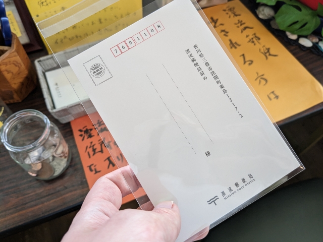 現地にて専用のハガキも3枚100円で販売されています。ハガキには既に漂流郵便局の住所が記されているので楽々です。
