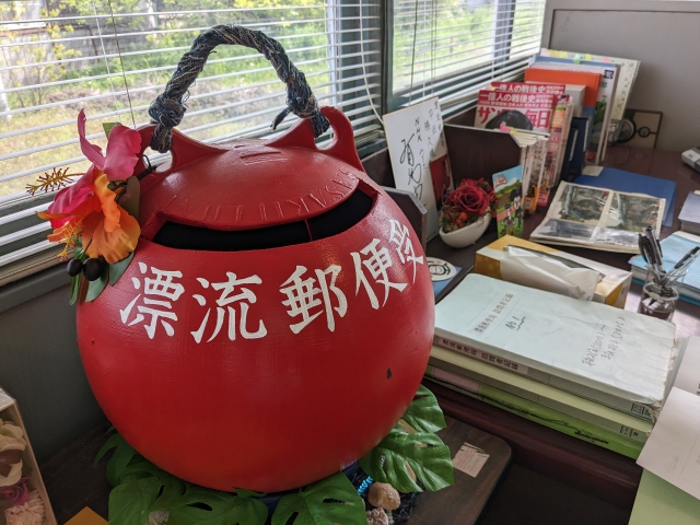 館内にある漂流ポストに投函することでも、この漂流郵便局に保管されます。現地に来た方は、その場で書いて投函も可能です。