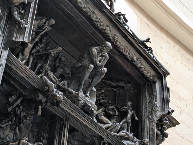 門の上部に《考える人》がそのまま付いています。前述の通り、この門の一部であった像を独立させたのが《考える人》なのです。例えるならアルバム曲をシングルカットしたようなイメージでしょうかね。