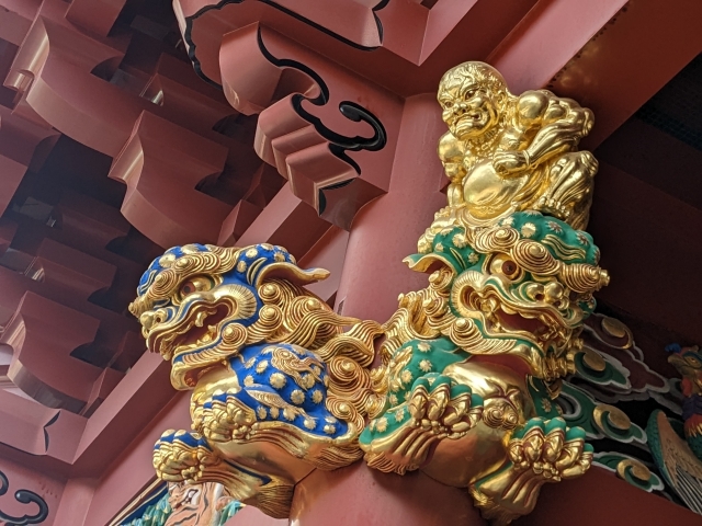 「立川(たてかわ)流」というのは 宮大工の流派。信濃国諏訪郡を本拠地としており、諏訪大社下社秋宮の幣拝殿や善光寺大勧進表門など、多くの神社仏閣を手掛けています。この静岡浅間神社でも、そんな立川流の作品が数多く残されているのです。