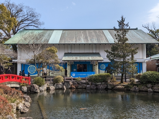 境内にあるこちらの建物は静岡市文化財資料館。2021年に閉館し、その役目は2023年1月オープンの静岡市歴史博物館に譲りました。