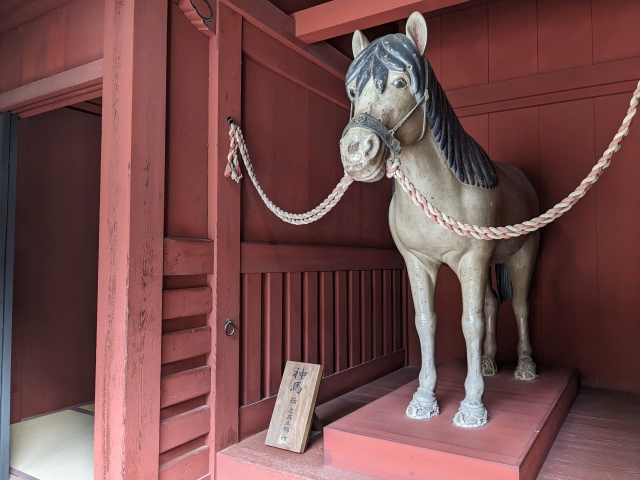 楼門の傍には神厩社があり、徳川家光が奉納したという木製の神馬が奉納されています。かつて徳川家康が奉納した馬を模して、名工として名高い左甚五郎に造らせたと伝わっているそう。どんな願いも叶えてくれるそうで「叶え馬」とも呼ばれています。
