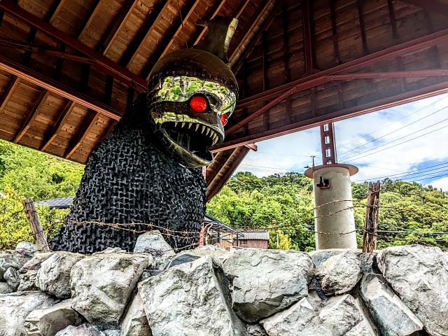 醤の郷から車で5~10分ほど離れたところには、なかなかインパクトのある作品が展示されています。それがこちらの《アンガー・フロム・ザ・ボトム 美井戸神社》by ビートたけし×ヤノベケンジ。