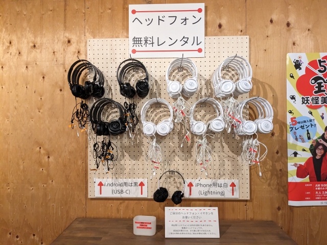 さらに、ヘッドフォンの無料レンタルも。専用のサイトを読み込むと、各展示室でオーディオガイドを聴くことができるのです。耳元で語りかけてくる女性の声に、一気に妖怪の世界へとひこずりこまれます。