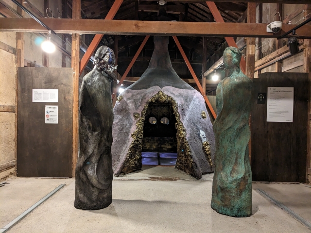 続いて向かった02号館。醤油屋の倉庫であったという建物に入ると、謎のゲートのようなオブジェが。