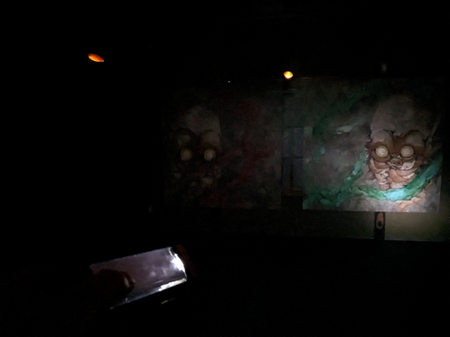 室内はかなり暗いため、小さな懐中電灯で照らしながら鑑賞します。妖怪探ししているみたいでわくわくしますね。