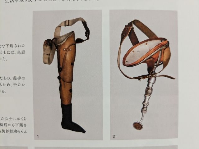 足を失った者に天皇より贈られた恩賜の義足。さらには義眼や義指なども展示されています。