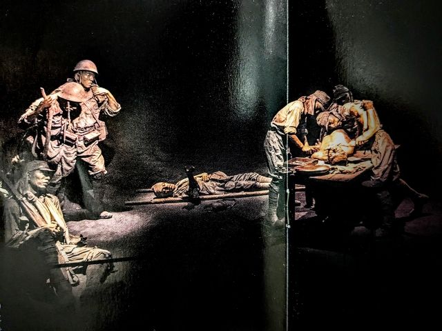 ジャングルの洞窟につくられた野戦病院を再現したジオラマもあります。等身大の兵士の人形が置かれており、恐ろしいほどリアル。ボタンを押すと解説音声も流れます。