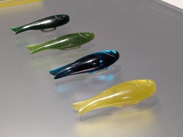 カラフルなガラスの瑠璃魚形(模造)は、箸置きかと思いきや腰帯から吊り下げた飾り。かわいらしいデザインですが、本来は通行証として利用されていたそう。