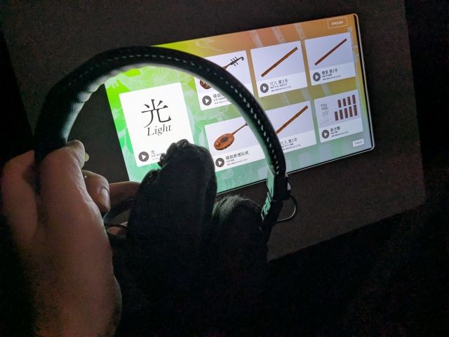 ミュージシャン、亀田誠治の《光》は1300年前の楽器から生まれた音楽。昭和20〜30年代にかけて録音された音源を使用して作り上げた楽曲が、展示室内にて流れています。それぞれの元になった音源を個別に聴くこともできます。