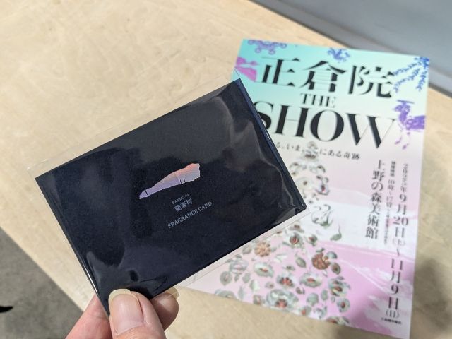 出口にはミュージアムショップがあり、展示物に関連した様々なグッズを販売しています。人気なのは「蘭奢待の香りカード」。一時は品切れになったものの、再販しました。