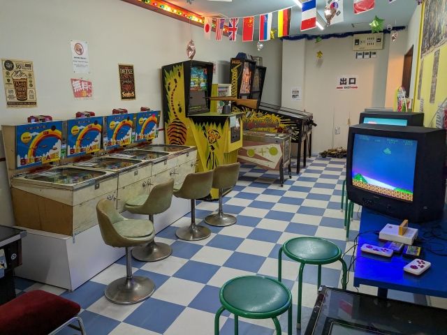 レトロが過ぎる空間、純喫茶。花札のアーケードゲームやジューク・ボックスが完備されています。まだこういうお店、一部の地域には残っていそうです。