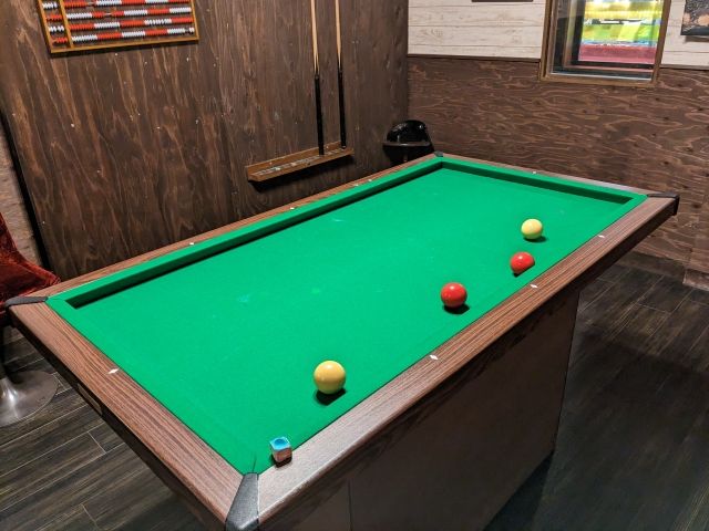 ビリヤードも遊べます。今はあまり見かけないポケットがないタイプ。9ボールと8ボールしか知らないのですが、これってどうやって遊ぶのでしょうかね。