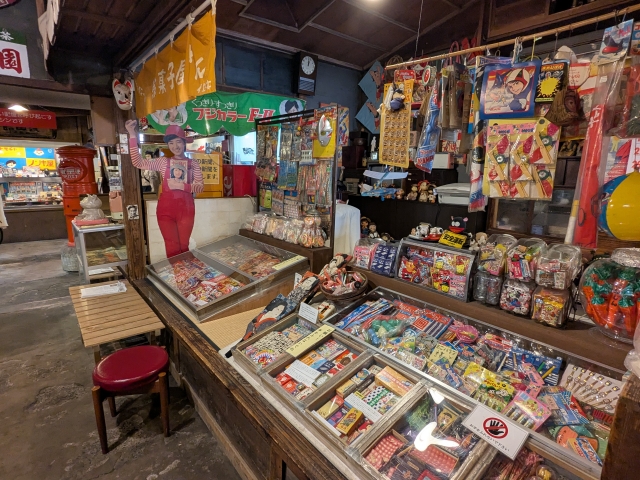 館内では、年配の方たちのグループが展示を見ながら「懐かしいねえ」と楽しそうに盛り上がっていました。駄菓子のパッケージやおもちゃを指さして、「これ持ってた」「テーマ曲まだ歌える」と、次々に思い出があふれてくる様子です。