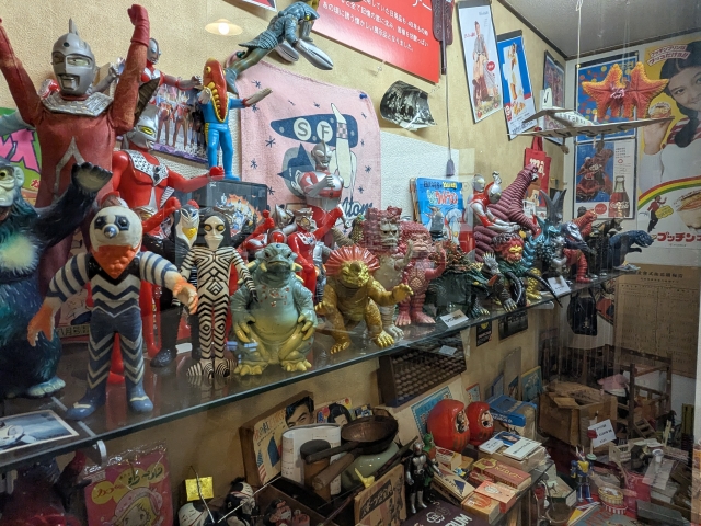 ソフビ人形もたっぷり!ウルトラマンや怪獣・宇宙人がずらりと並んでいます。ゴーデス、ヴィラ星人、アギラ、アボラスなど、私が知ってるのもたくさんいました!!