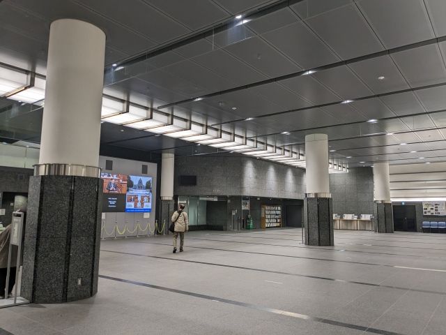 エスカレーターで降りると広い空間へ。モニターで国会の紹介や国会クイズが流れ、衆議院議長と副議長の写真が飾られる、いわばエントランスホールのようなスペース。ここでトイレを済ませたら、手荷物検査があります。