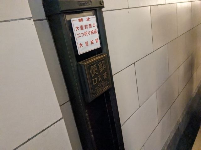 壁に埋め込まれた筒は、郵便投函塔。ここに郵便物を投函することで、地下で集積されていくそう。ハガキ持参すれば投函することも可能なので、気になる方は事前にご用意ください!