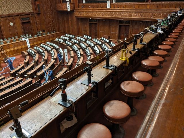これぞ国会!といった光景が広がるのが本会議場。ここでは実際に傍聴席へ座り、じっくりと衛視さんの話を聞くことができます。