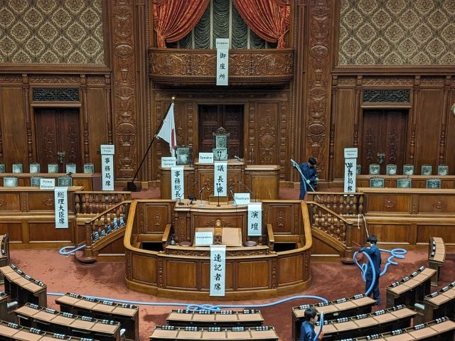 中央の「議長席」、議長を支える「事務総長席」、左右には大臣や副大臣が前列、事務局員が座る後列など、それぞれ座る人が定められています。