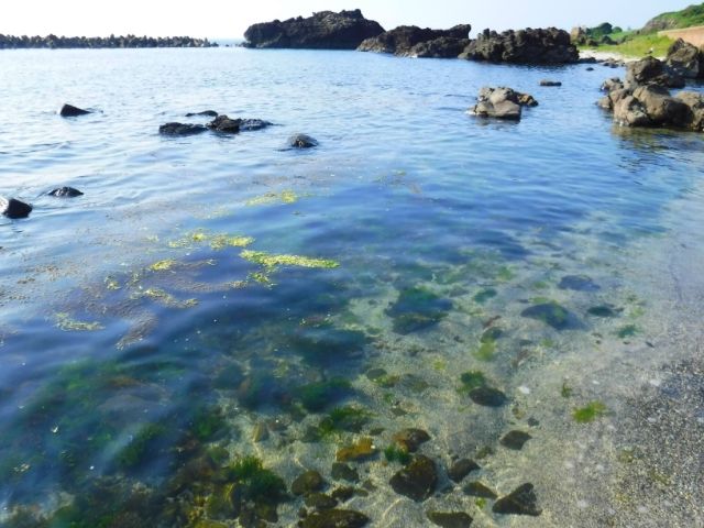 とはいえ、潮も引いていて水位も低いです。今泳いでも海藻まみれになるだけでしょう。泳ぐのは明日にしよう!