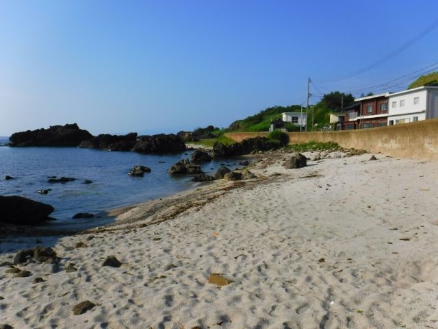 佐渡島初日の夜を過ごす予定の相川地区へ向かいます。途中、井坪にあるビーチへちょっと寄り道。ここは佐渡唯一と言われる砂浜のビーチなのです。