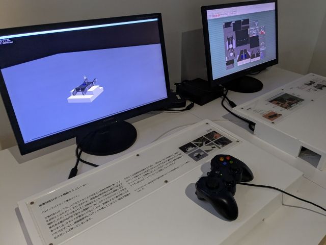 すぐ側には操縦シミュレーターもあります。まるでゲームみたいなコントローラーですが、ホンモノの訓練ソフト。東日本大震災の際にはパイロット不足という課題があったため、一度に多くの人が訓練できるように開発されたそうです。