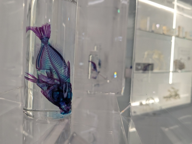 あざやかに色づいた透明標本も多数展示されています。サカナの骨格って、想像とは違うカタチをしていることがあって面白いです。