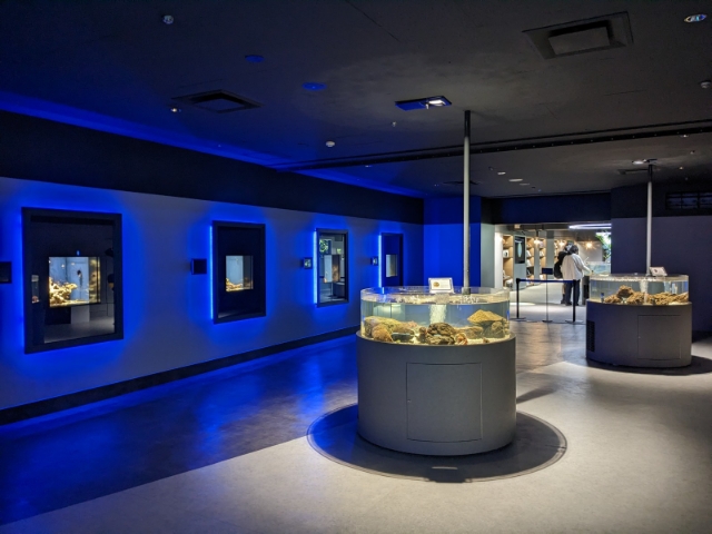 館内は「暮らしに寄り添ったスタイリッシュな水族館」がテーマとのこと。大型水槽などは建物の都合で設置できないため、まるで美術館のような雰囲気に仕上がっています。BGMもリラクゼーション系で心が落ち着く空間です。
