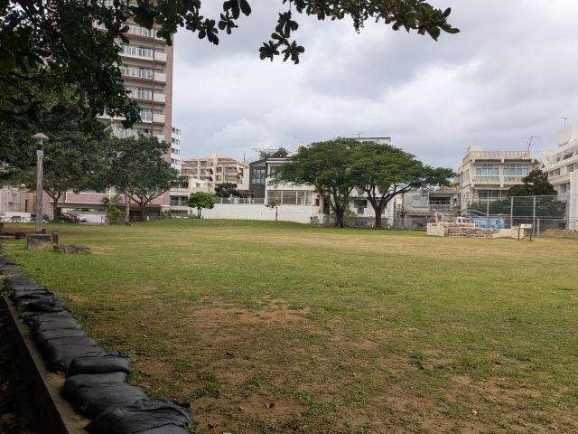 ガジュマルの奥は芝生の広場。ここは崇元寺公園として整備されており、トイレもあります。早朝であるためか、誰もおらず、私の異世界気分は解けておりません。