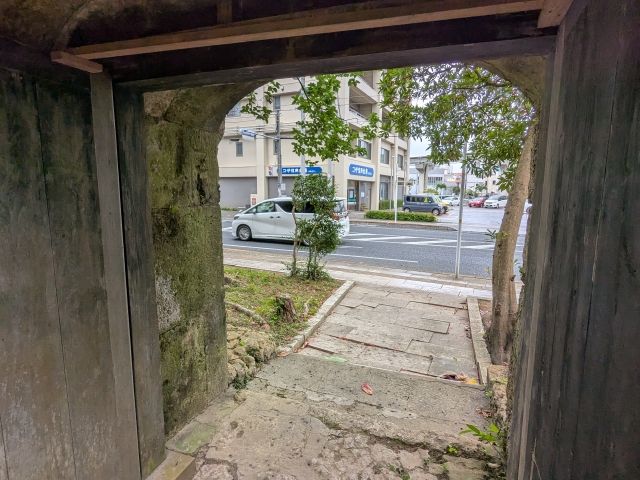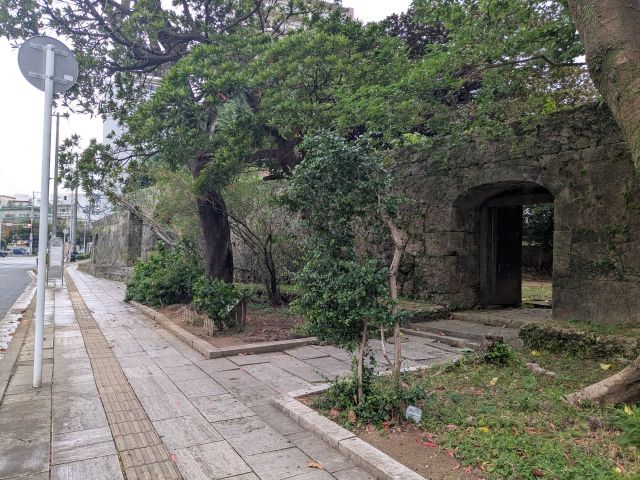 国際通りから少し離れた道路上に突然現れるのは、石造りの重厚な門。ここはかつて崇元寺(そうげんじ)というお寺のあった場所です。