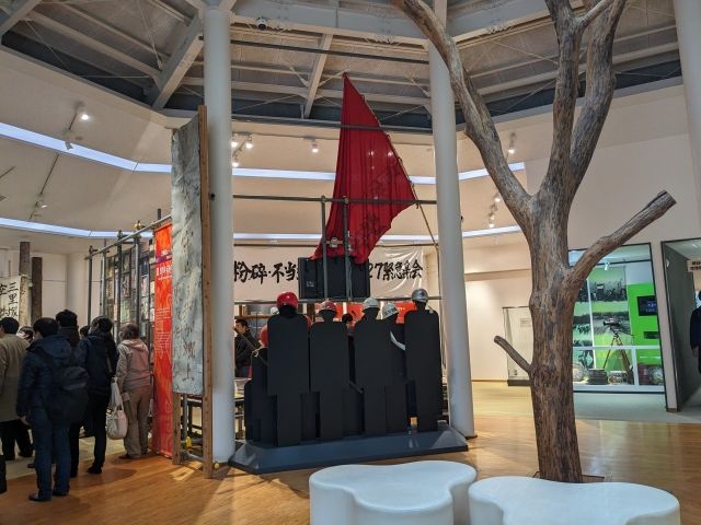 お子様連れでにぎわう航空科学館とは対照的に、こちらは非常に静かな博物館。館内では写真やパネル、さらには闘争の歴史を今に伝える様々なものが展示されています。