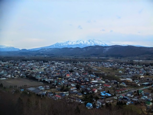 目の前に広がる大雪山連峰!街を見守るように浮かび上がる巨大な雪山は、幻想的です。