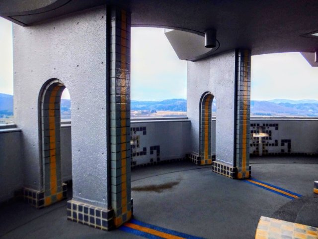 タイルが貼られたおしゃれな展望台。エスポワールの鐘と呼んで来ましたが、正式名は大雪展望台。
