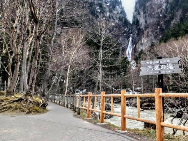 エスポワールの鐘から30分ほど進んだところで見えてくるのは、名前がかっこよすぎる流星の滝&銀河の滝。旭川から約50分、層雲峡温泉から約5分ほどのところにあります。