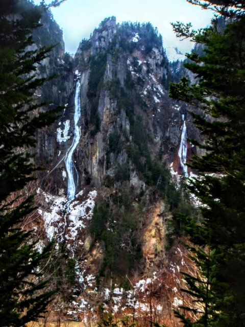 まずは流星の滝。垂直落下タイプ。勢いのあるダイナミックなこの滝は、別名『雄滝』というそうです。