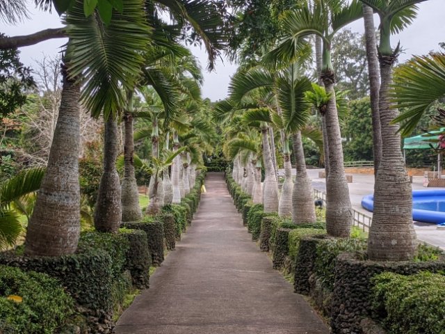 圧巻はユスラヤシの並木。スラリとまっすぐに伸びたヤシの木が立ち並ぶ様は美しく、思わず写真に撮りたくなる光景です!これが見たくて来たといっても過言ではありません。