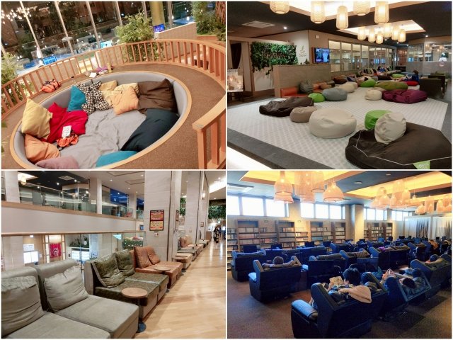 他にも、各所にビーズクッションや寝転がれるスペースが多く設置されています。様々なスタイルがあるので、お好みに合わせて選べます。