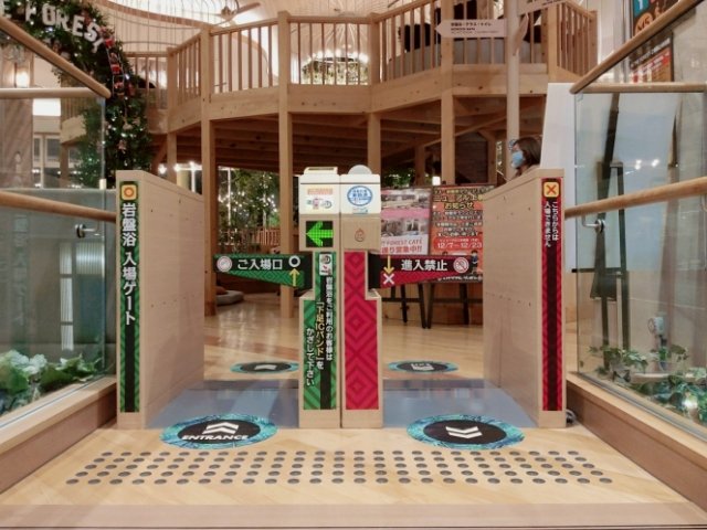 入口にはゲートが設置されています。岩盤浴料金を払っている人は、先程のキーをここにタッチすることで自由に館内を移動できるようになります。