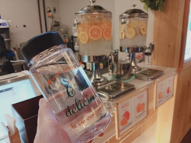 ユニークなのは、デトックスウォーター。マンゴーオレンジとリンゴレモンのフルーツウォーターなのですが、500円のボトルを購入すると当日おかわり自由!岩盤浴と合わせて利用するととっても良さそうです。ボトルはそのままお持ち帰りできるので、得した気分。