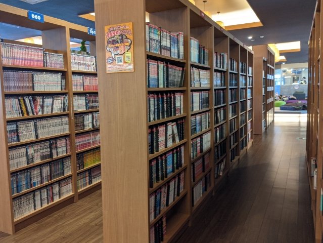 そんな快適空間には、漫画&雑誌が約30,000冊。有名な作品や話題作はだいたい揃っており、もし近所に住んでいたら、入り浸ってしまいそうな魔力を感じます。