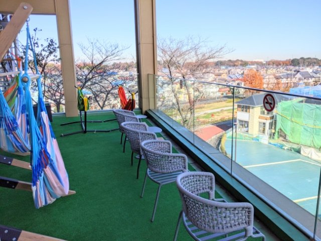 外に出ることができるテラスもあります。ちょっと肌寒いですが、岩盤浴からそのまま外気浴に突入できる施設ってけっこうレアなのでは。