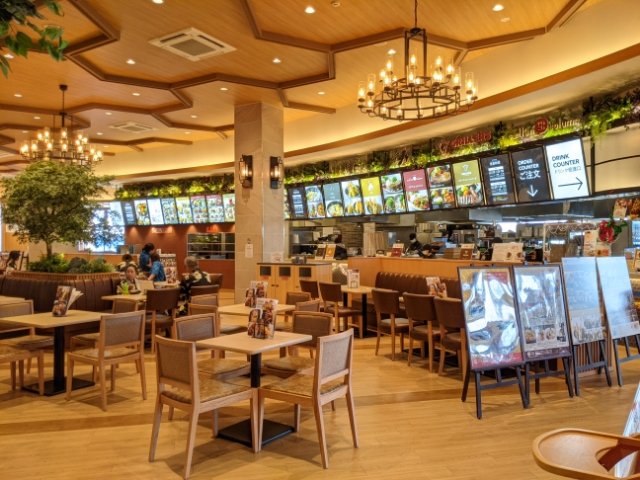 館内にはな豪華な雰囲気のフードコートがあります。ステーキ、ラーメン、ピザなど、メニューのバリエーションが豊富なので、1日過ごして3食たべても楽しめそう。