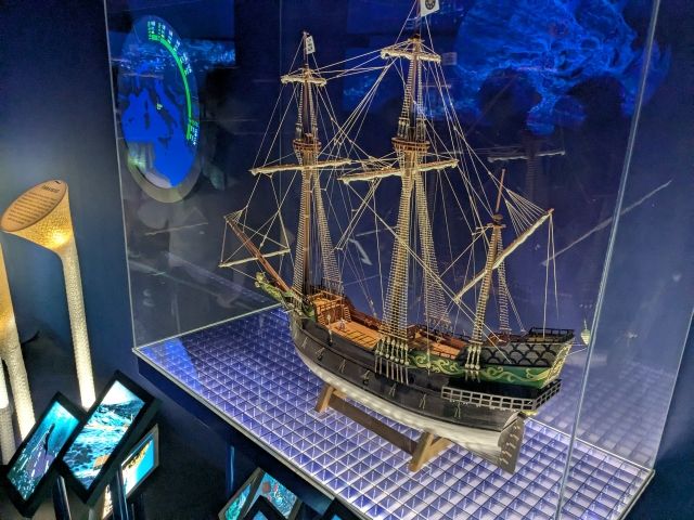 スペインパビリオンのテーマは「黒潮」。大航海時代の利用や海賊物語、更には日本との交流まで、幅広く海を示した展示が続きます。