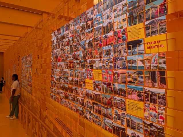 対面の壁に並ぶのはポストカード!こちらもディスプレイと同様のテーマの様々な写真が映されていました。