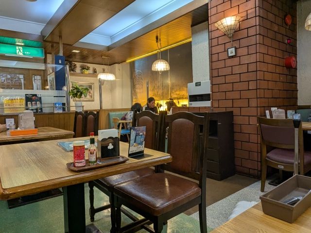 メニューはナポリタン、ハヤシライスなど、昔ながらの洋食店の様子。