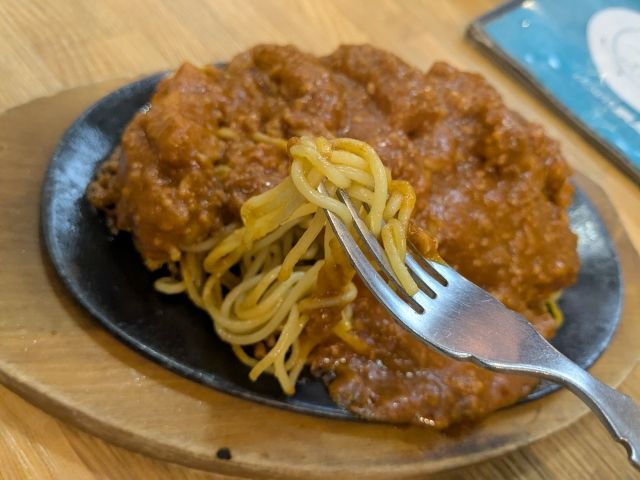 釧路の名物料理であり、鉄板皿にスパゲティとカツがのったメニューであるそう。噂によると釧路のソウルフフードとのことで、釧路出身の友人も当然の如く知っておりました。