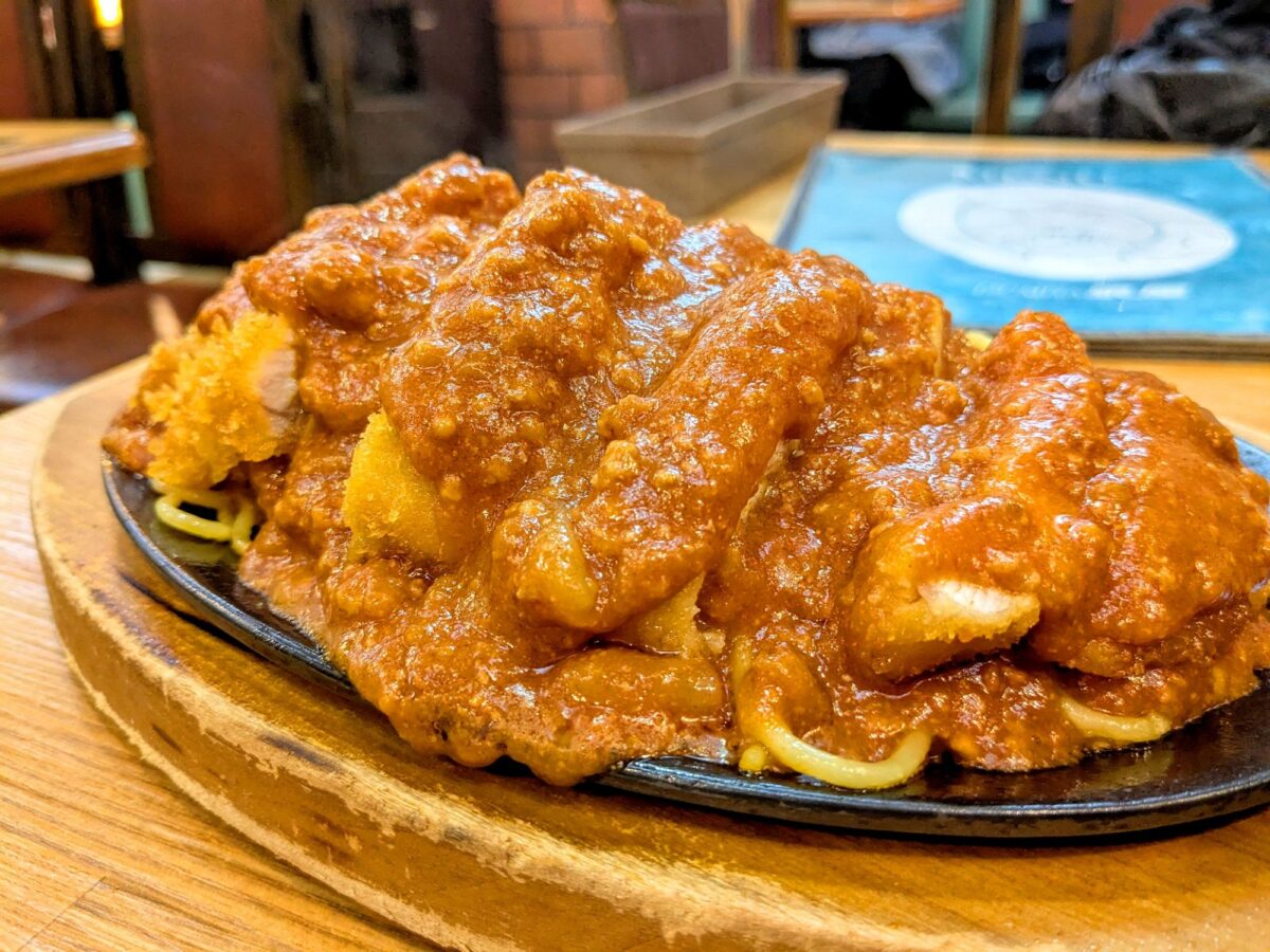 釧路の名物料理であり、鉄板皿にスパゲティとカツがのったメニューであるそう。噂によると釧路のソウルフフードとのことで、釧路出身の友人も当然の如く知っておりました。
